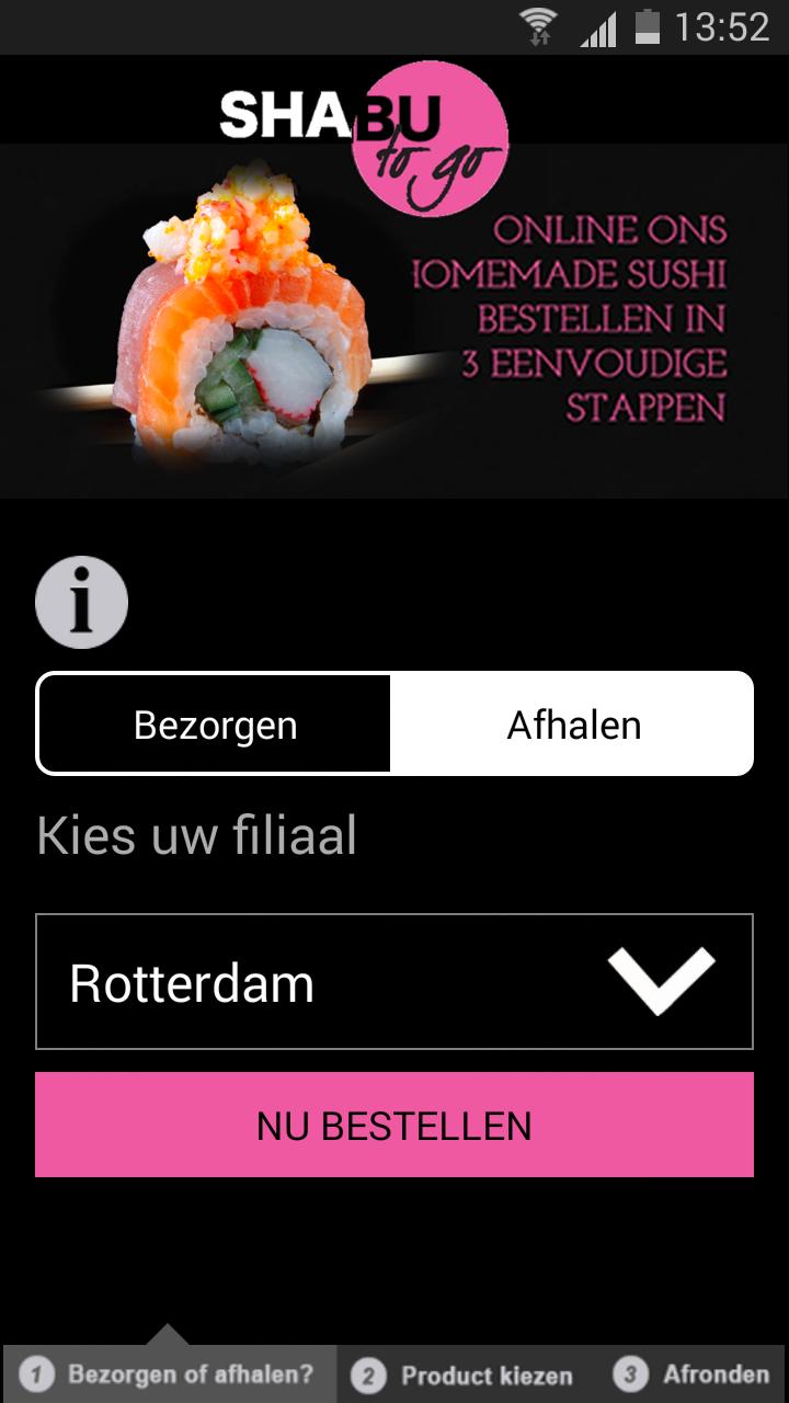 Selamat datang di aplikasi Shabu To Go . Kami telah membuatnya lebih mudah bagi Anda untuk memesan dari kami. Dalam tiga langkah Anda dapat memesan hidangan lezat kami di ponsel Anda. Dengan aplikasi kami, Anda bisa: