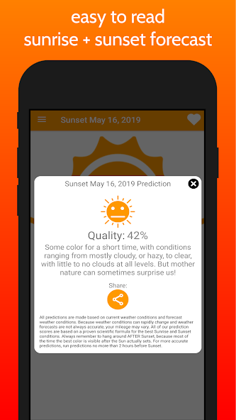 SkyCandy menggunakan ramalan hiperlokal untuk memprediksi kemungkinan matahari terbit atau terbenam yang indah berdasarkan kondisi cuaca yang diketahui yang mendukung langit yang indah pada waktu ajaib itu. Perlu diingat bahwa skor tinggi (seperti 80%) berarti bahwa ada kemungkinan yang sangat kuat matahari terbenam akan indah, tetapi itu bukan jaminan. Kebalikannya juga benar.
