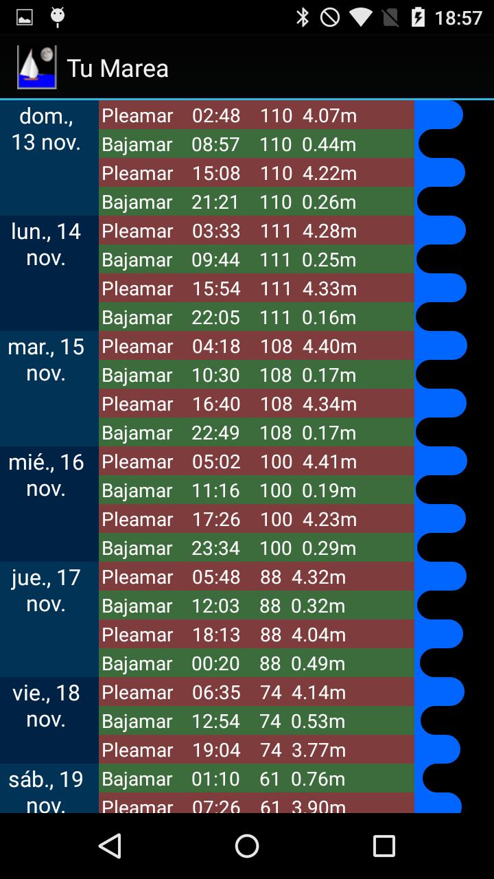 * Pasang surut dari minggu -minggu mendatang dengan grafik tinggi untuk dengan mudah menemukan gelombang hidup.