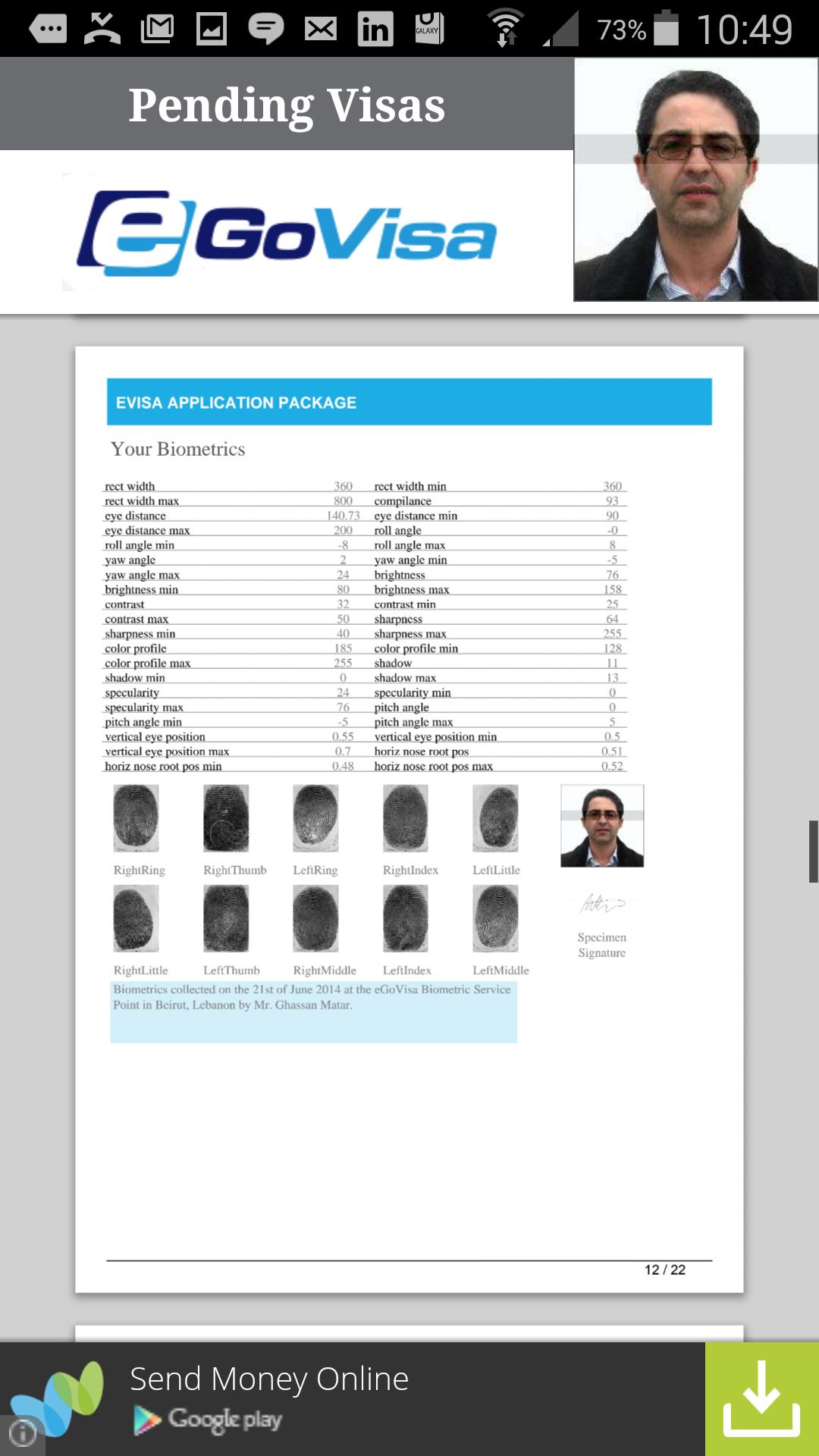 Seperti aplikasi Sister IOS -nya, aplikasi Android akan memungkinkan Anda untuk mendapatkan informasi visa apa pun, membuat aplikasi visa dari ponsel pintar Anda, melaporkan dokumen yang hilang, pesan perjalanan Anda dan membeli asuransi perjalanan. Semua ini dapat dilakukan dengan beberapa penekanan tombol yang bertentangan dengan sistem lain yang mengharuskan Anda melalui formalitas yang membosankan. Antarmuka aplikasi dengan kerangka Egovisa yang memungkinkan Anda untuk mendaftar sekali dan memproses aplikasi visa untuk negara mana pun di dunia tanpa harus mengisi formulir lagi. Aplikasi Android Egovisa juga memungkinkan Anda memesan rencana perjalanan Anda menggunakan antarmuka intuitif yang dapat ditautkan ke aplikasi visa Anda. Penyelarasan visa dan perjalanan memastikan bahwa proses perjalanan & visa Anda disinkronkan dengan sempurna.