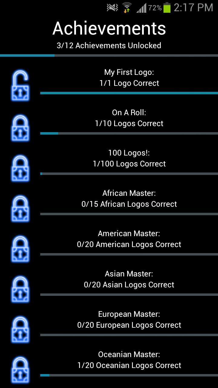 Berapa banyak logo bir dari berbagai daerah yang dapat Anda kenali? Cukup pilih suatu wilayah, dan ketuk logo apa pun yang menurut Anda dapat Anda beri nama! Semua logo disaring ke daerah yang berbeda, untuk setiap 3 logo yang Anda dapatkan, Anda mendapatkan petunjuk. Anda juga bisa mendapatkan 2 petunjuk bonus per iklan diklik.