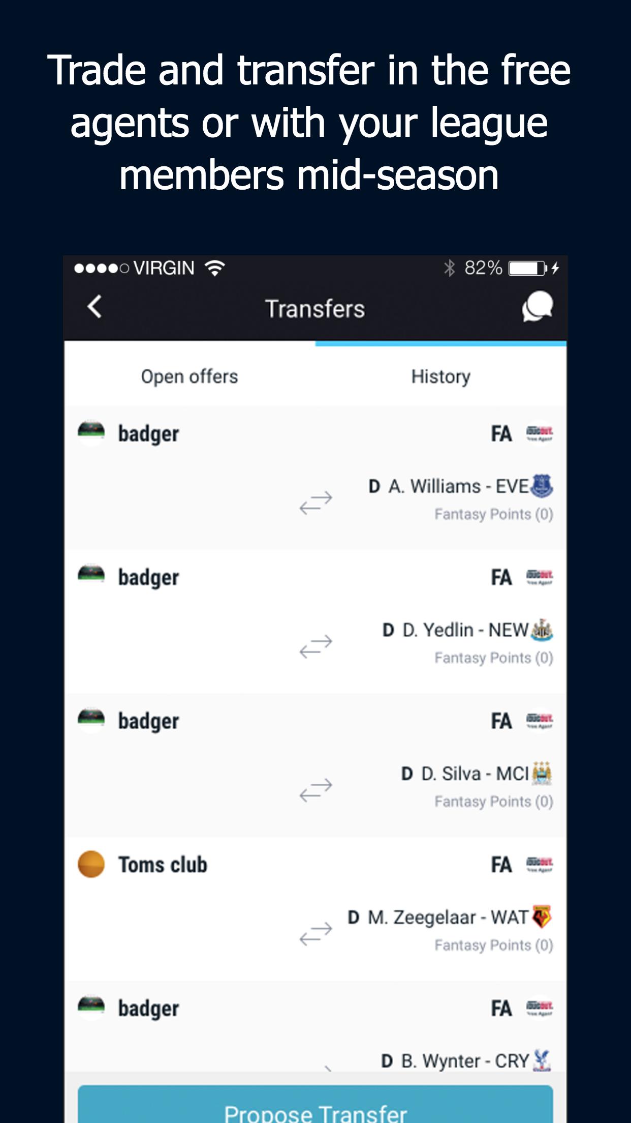 Dugout FC adalah pertandingan sepak bola fantasi draft utama untuk Liga Premier Inggris. Nikmati kegembiraan Draft Night di mana pun Anda berada, dan kemudian bertarung berhadapan dengan teman dan anggota liga Anda setiap minggu.