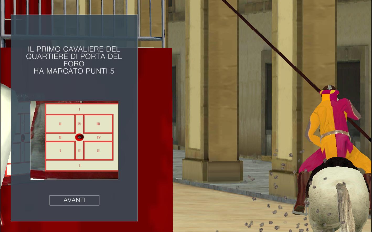 Esimple, dengan teknologi inovatifnya, menciptakan game ini sebagai penghargaan ke kota Arezzo, dengan tujuan membuat dan memahami keindahan acara unik ini, dari sudut pandang "orang pertama" dan menghibur Aretini memainkan korsel nyata Saracino virtual.