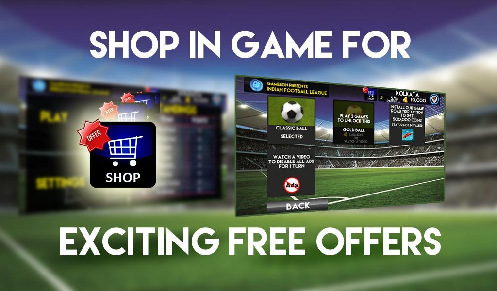 Juga pilih waktu gameplay Anda dari yang dapat disesuaikan 2, 3 atau 4 menit. Lihatlah penawaran gratis yang menarik di bagian toko permainan yang memungkinkan Anda untuk mengalami versi premium dari game secara gratis. Gunakan toko dan toko untuk penawaran menarik seperti Gold Ball untuk memainkan pengalaman liga sepak bola India sejati.