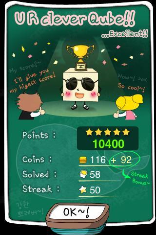 - Matematika Qube bukanlah permainan untuk menyelesaikan pertanyaan. Ini dilengkapi dengan 'sistem streak' tak terbatas maka jika Anda menjawab dengan benar secara berurutan, Anda bisa mendapatkan lebih banyak poin dan koin. Anda dapat menghiasi karakter dengan koin yang Anda kumpulkan seperti ini. Cobalah untuk menempatkan berbagai item yang cocok dengan karakter dengan baik pada karakter. Karakter yang didekorasi juga muncul di layar utama. Apakah Anda tidak ingin memiliki layar utama yang berbeda dari orang lain?
