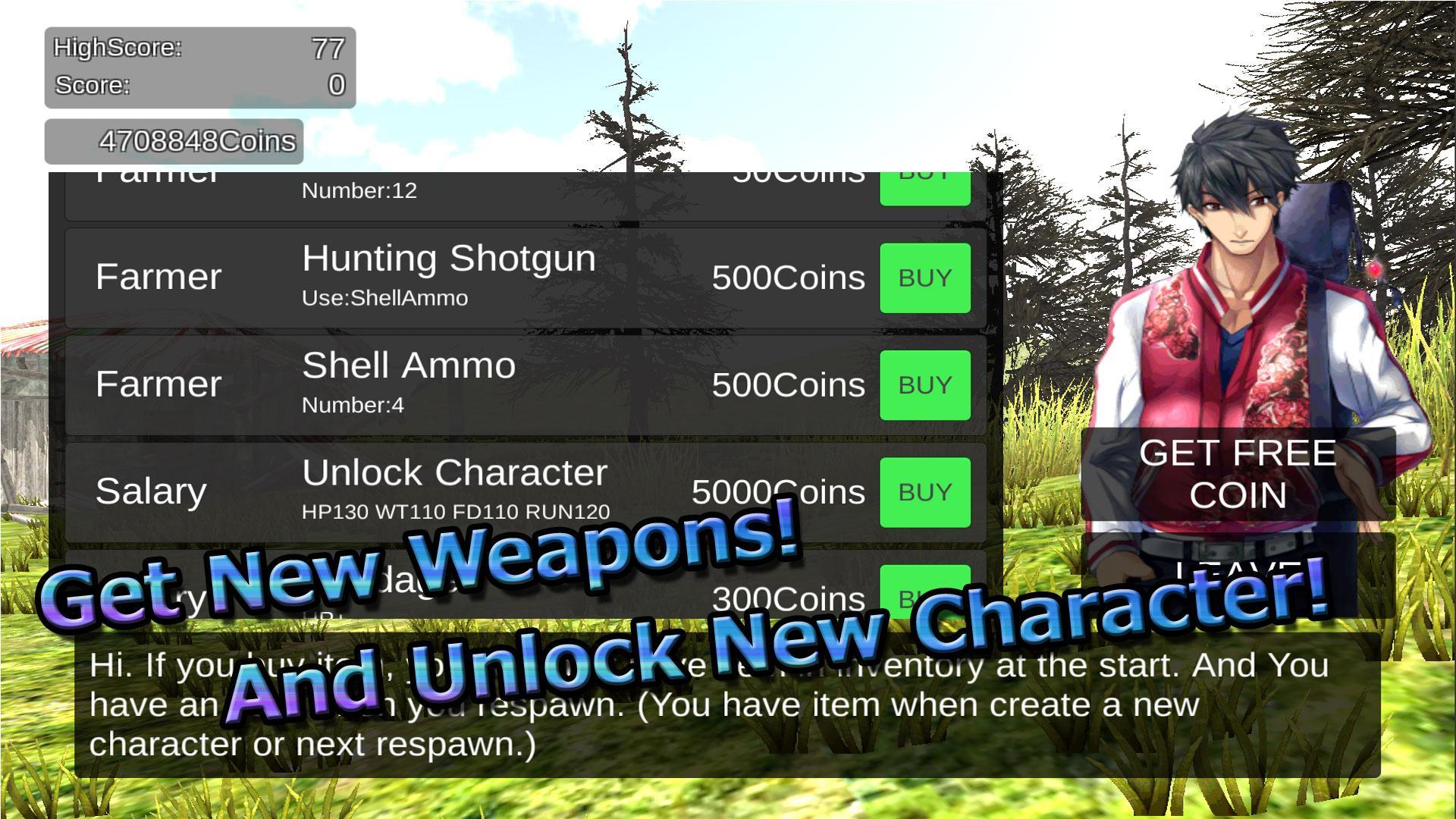 Menggunakan koin, Anda dapat membuka kunci senjata baru atau karakter baru yang dapat dimainkan.