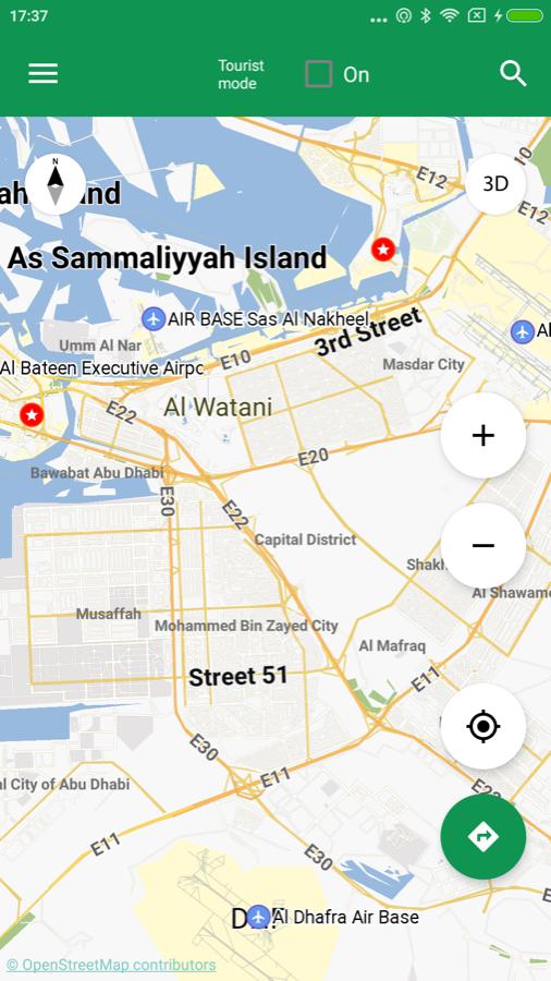 Abu Dhabiのオフラインマップ(アラブ首長国連邦) - 無料の旅行アプリケーション。それは次のとおりです。ルートをマップし、写真や説明で光景を見るアトラクションを見せ、最寄りのコーヒーショップやスーパーマーケットを見つけます。インターネット接続は必要ありません。