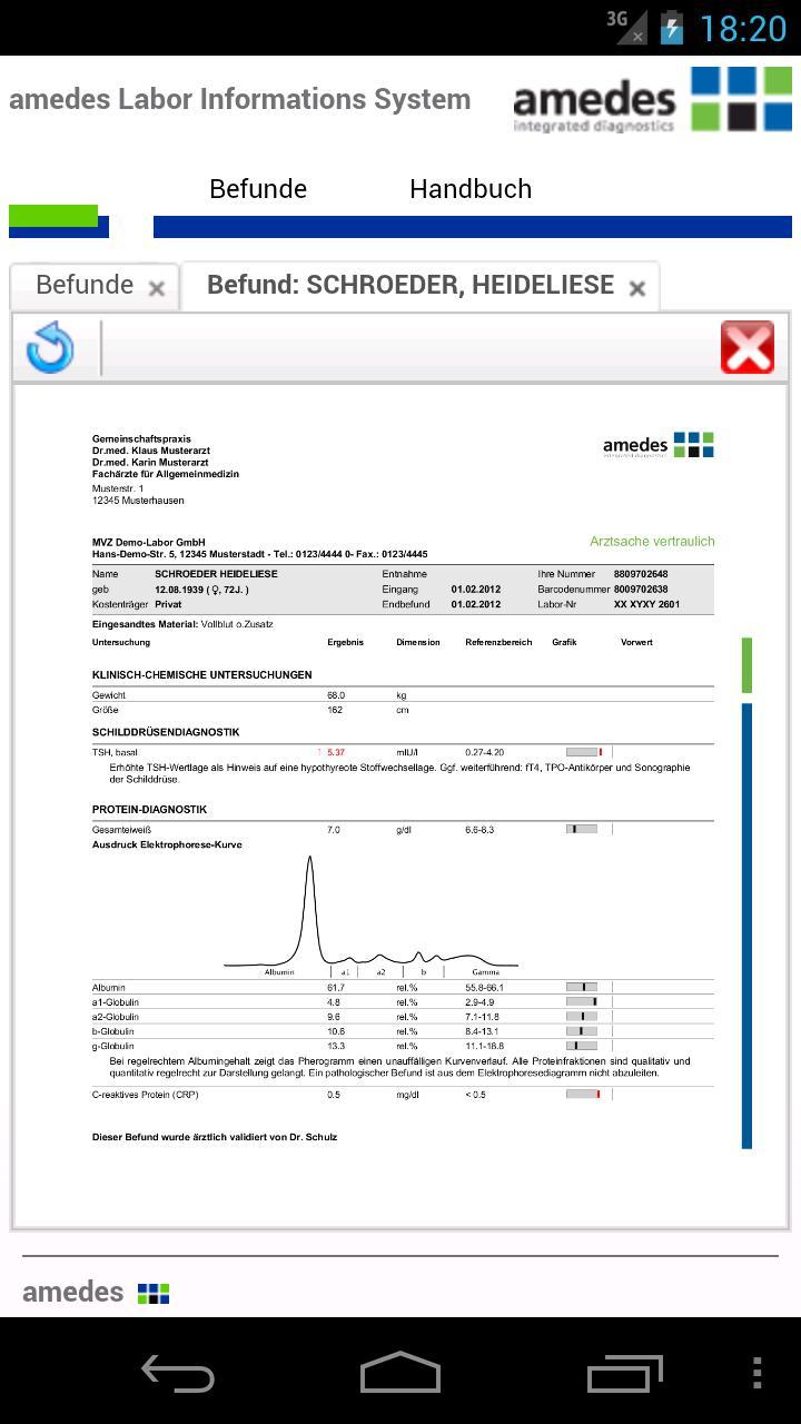 Androidデバイスを介して実験室での調査結果を快適に呼び出してください