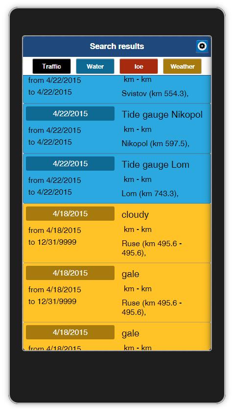 •検索結果のプレビュー - トラフィック、水路、氷、天気の4種類の通知が表示されています