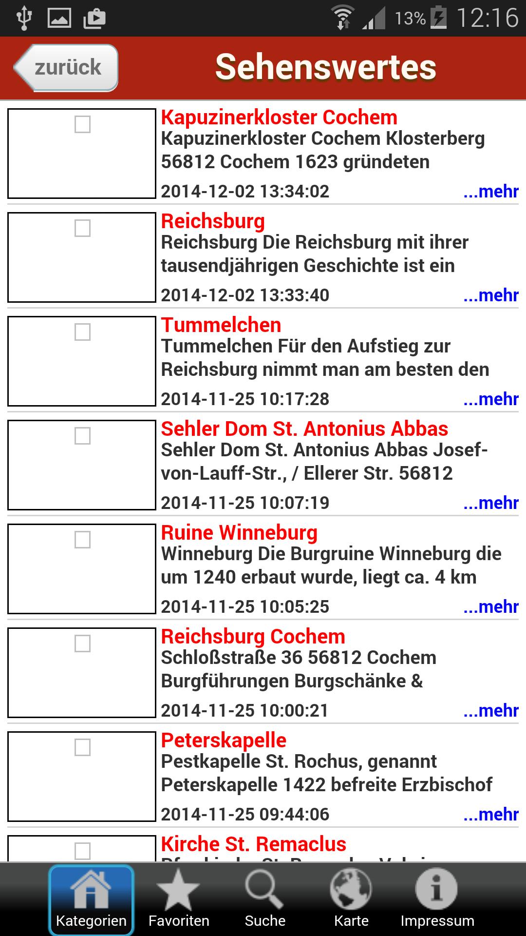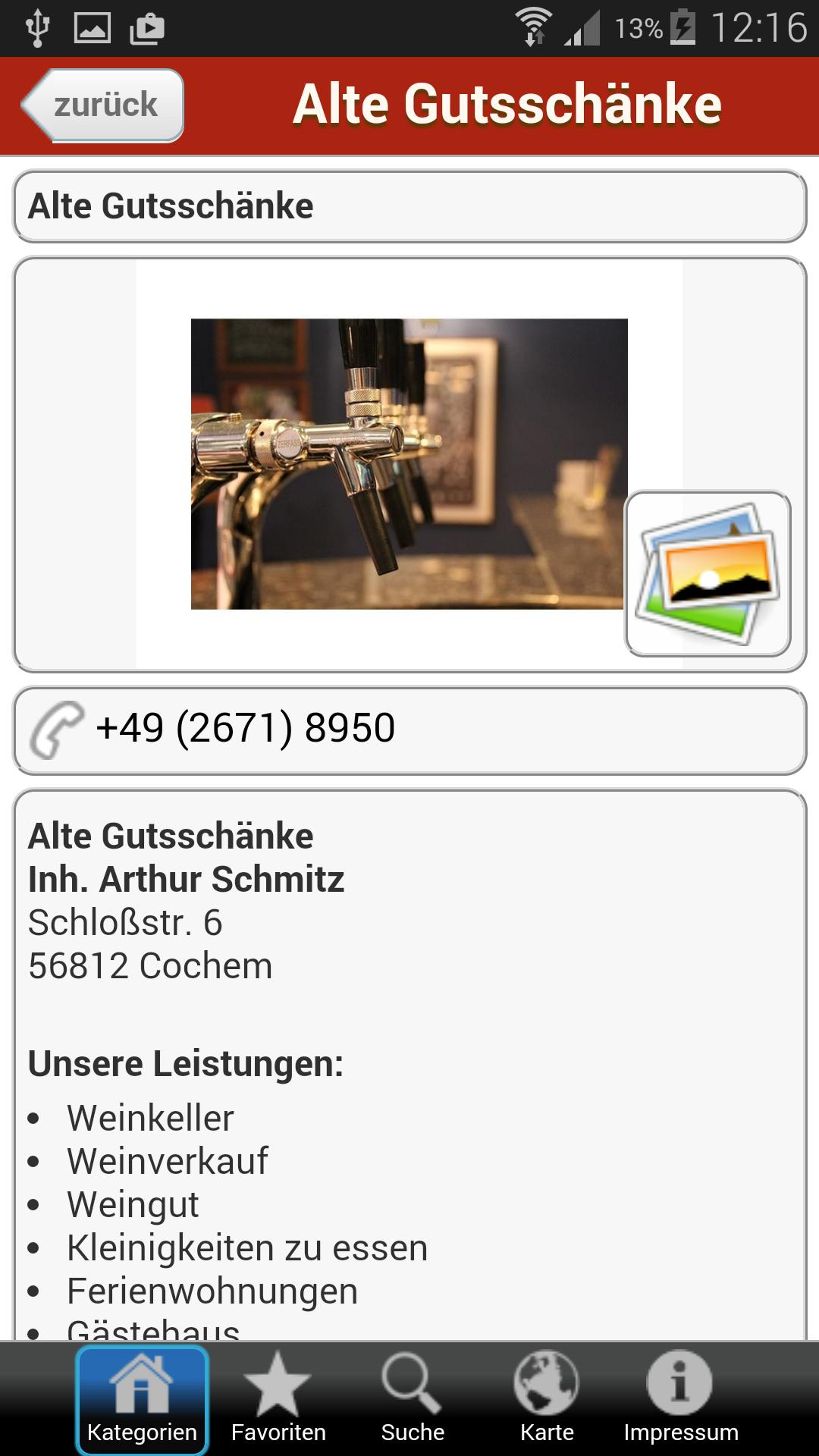 Cochem-ZellのRhineland-Palatinate地区の最初の都市の1つとして、私たちの都市を提供しなければならないすべてを含むモバイルオールインクルーシブ媒体を提供しています。観光の分野だけでなく、見る価値があるだけでなく、外出、夜を過ごす、買い物のトピックに関する広範な情報も提供しています。