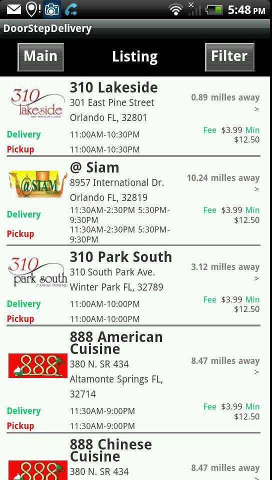 ついにここにあります!これで、お気に入りのレストランをAndroidから直接注文できます。1つのフラット配達料金に加えて、勤勉なドライバーのヒントを送ったり、自分で食べ物を手に入れたりできます。いずれにせよ、 Doorstep Delivery =利便性、手頃な価格、満足度、そしてあなたが永遠に食べ物について考える方法に革命をもたらしています!現在、オーランド、ゲインズビル、タラハシー、マイアミ、ジャクソンビル、デンバー、ミネアポリス&ナッシュビルで利用可能で、すぐにフロリダ州と米国のさらに多くの都市に来ることになります。