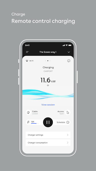 Easeeアプリを使用すると、メインヒューズが過負荷にならないように、充電器がどれだけの電力を描くことができるかを制限する能力があります。アプリから限られた充電電力を簡単に設定できます。