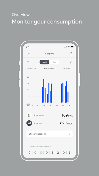 Easeeアプリを使用すると、毎月どれだけの充電を行ったか、現在充電している電力の量、電気自動車のバッテリー(EV)でどれだけ補充したかについての洞察があります。さらに、各フェーズの電力分布を監視できます。さらに、充電器のステータス、車が接続されているかどうか、充電が進行中かどうかを常に確認できます。
