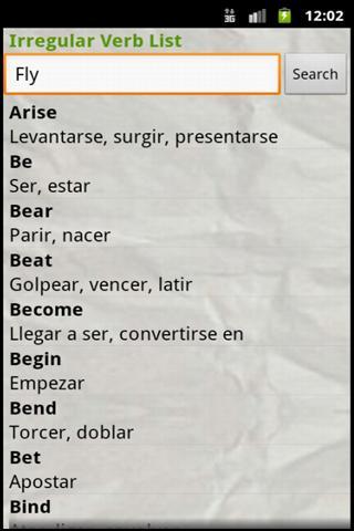 英語(常連と不規則)で動詞を学びます。不定詞、単純な過去、過去分詞、スペイン語の定義、および例の文が含まれています。さらに、各動詞に独自の例の文章を追加できます。
