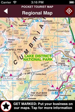 * 南部湖水地方 (ウィンダミア、コニストン、ウェストウォーター、アンブルサイド) の詳細地図。