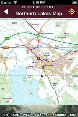 * 北部湖水地方 (ケズウィック、ダーウェント ウォーター、バターミア、アルズウォーター) の詳細地図。