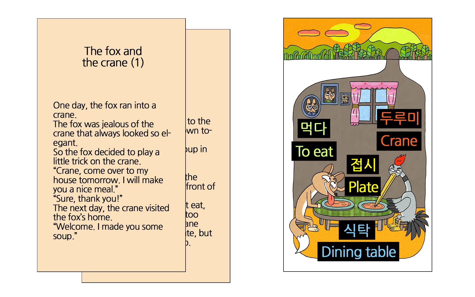 *「イソップのf話」の主なテキストは、読者が短期間で韓国語の語彙を簡単に学ぶことができるように構成されています。