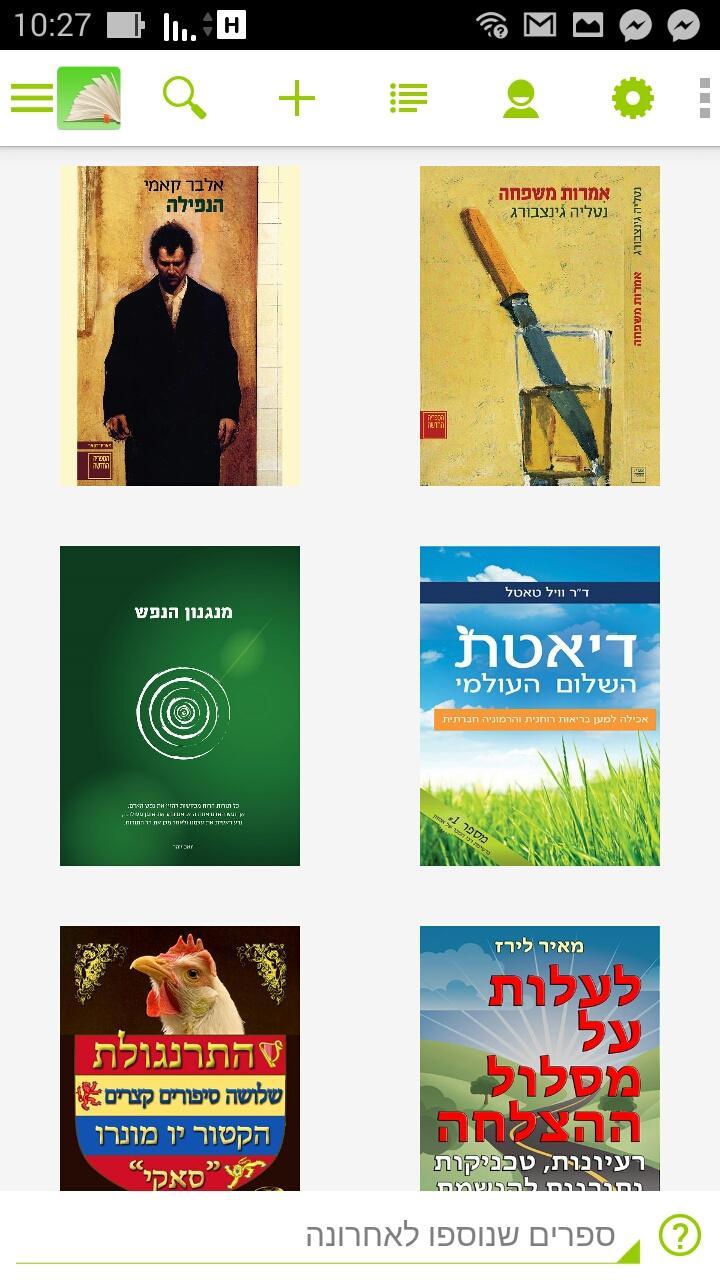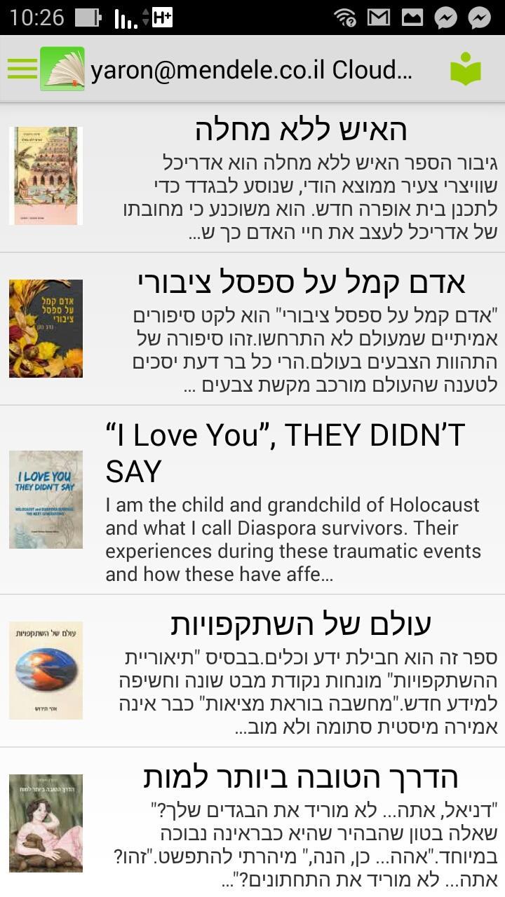 ヘブライ語の電子書籍を読んで、クラウドリバレーを入手し、地元の本を開き、カタログを閲覧します