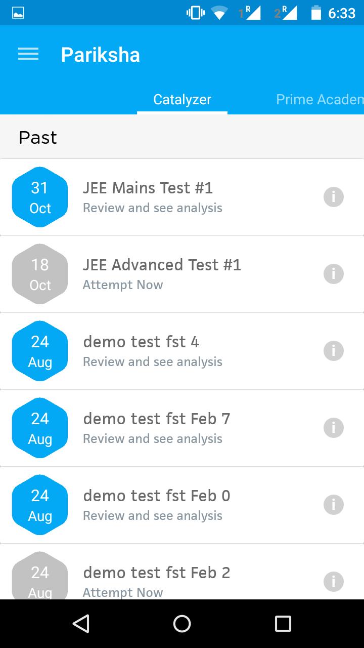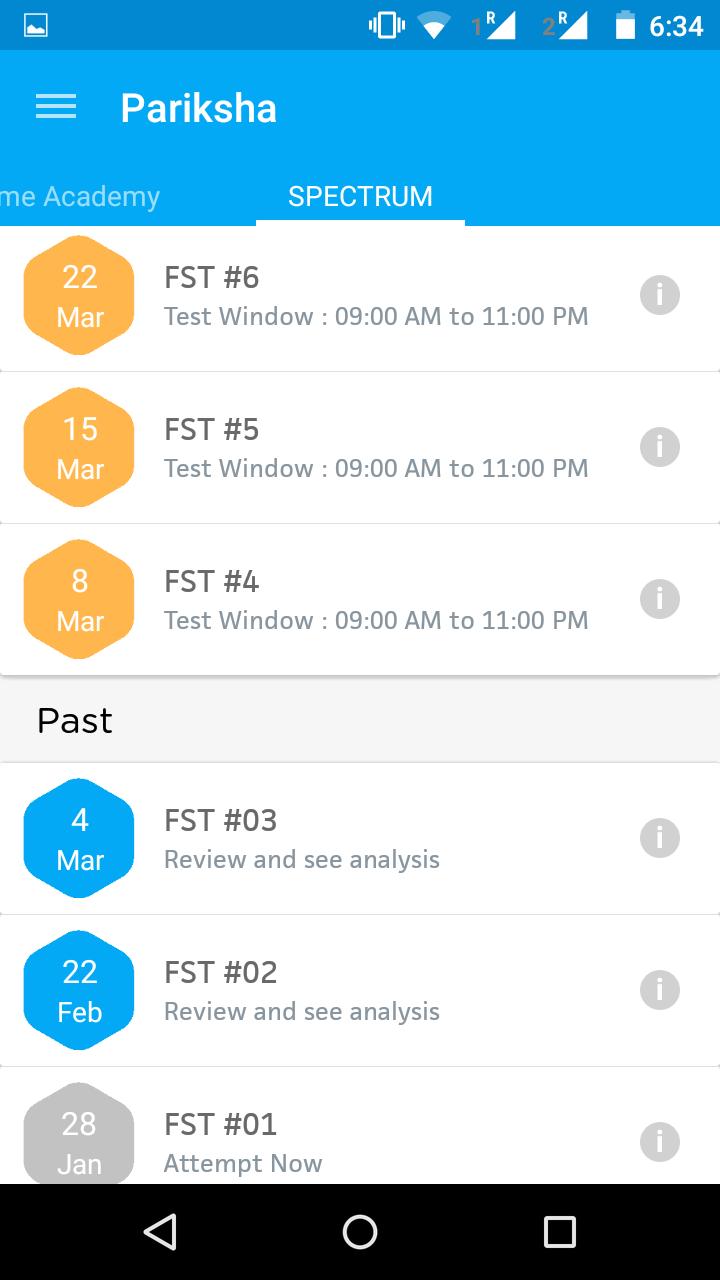 Pariksha評価プラットフォームは、インド全土の学生が次のようなさまざまな入学試験に備えるために使用されます。