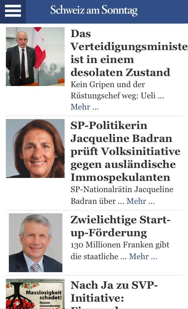Schweiz am Sonntag 、北西と南東部で最も一般的な日曜日の新聞で、203,130部の流通があります。毎週、エキサイティングな研究、照明の背景、インテリジェントなエンターテイメントを提供しています。そして日曜日の日曜日は驚くべきプライムラー。すべてが喜びで実装され、理解できる方法で書かれ、説明されました。