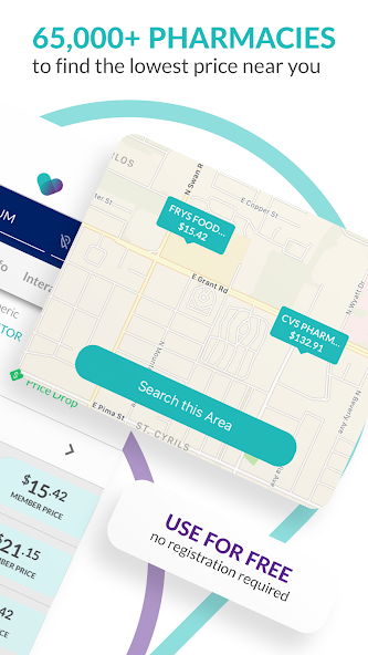 無料のメンバーシップを使用すると、処方箋の節約を検索し、お近くの薬局で割引を受け、RX薬で平均65%*を節約できます!**