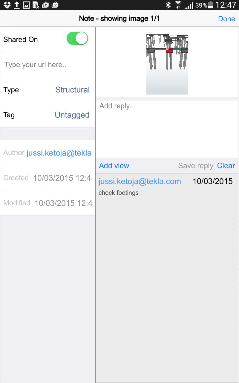 Tekla Field3D使いやすいIFC / BIM 3D-Viewer。非常に大きなモデル*(2 GB ++)を開くだけでなく、3Dモデル情報を表示および抽出するための多くの便利で簡単な関数もあります。携帯電話とタブレットの両方で流frueします。