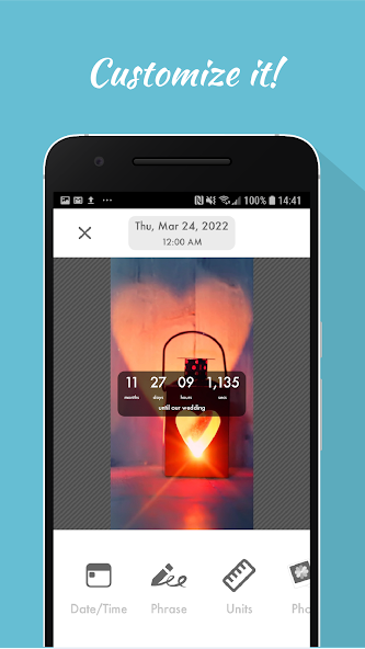 それは楽しいです!、結婚式のカウントダウンは、多くの異なるユニットであなたの結婚式をカウントダウンすることができます!年、数ヶ月、日、時間、数分、秒、心拍またはキス!