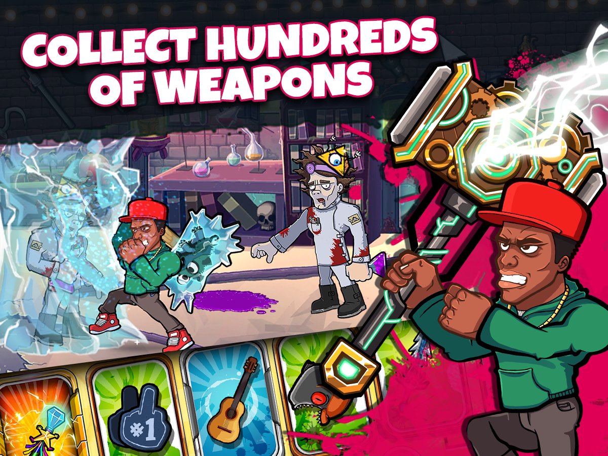 △ 武器を収集 – ラバー アヒルから伝説のプリンセス スパークル パージ スティックまで、何百もの非常識な武器で敵を打ち負かしましょう。