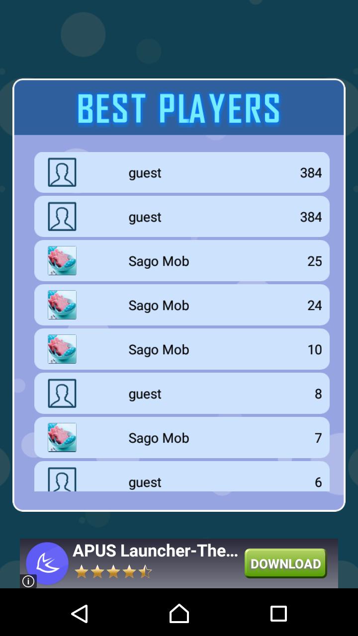 - リーダーボード(世界中のトッププレーヤー)。これに参加するには、できる限り最高のスコアを取得して、ゲームを終えるときにインターネット接続をオンにしてください。レコードにスコアを投稿する場所があります。友達に挑戦するのに役立つ機能です。