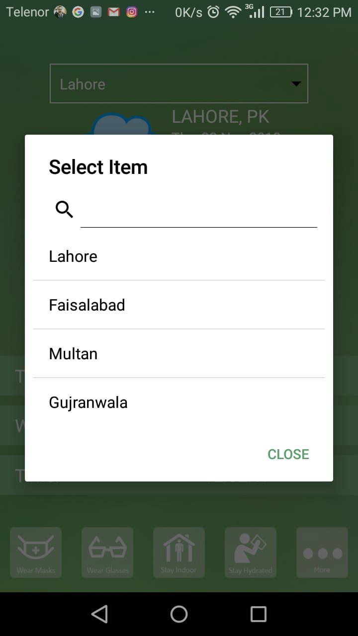 이 앱은 Lahore의 최신 대기 질 인덱스를 공유합니다.
