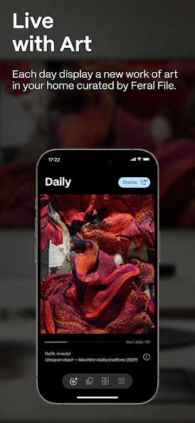 매일, 우리는 당신이 모든 화면 (모바일 장치, 데스크탑 및 스마트 TV 포함)에 갤러리 스타일을 표시 할 수 있도록 새로운 아트 워크 하나를 선별합니다. 우리의 광범위한 컬렉션에서 직접 선택한 각 "매일"은 자신의 숭고한 파괴적인 세상을 탐험하도록 초대합니다. Feral File Android 앱을 Google/Android, Samsung 및 LG TVS에서 사용할 수 있음)와 함께 Feral File Android 앱을 페어링하면 시대의 예술과 지속적으로 관점을 넓힐 수 있습니다. 당신은 우리의 예술가들을 알게되고, 멋진 매력적인 비주얼 배열로 당신의 공간을 확대하는 것을 좋아할 것입니다.