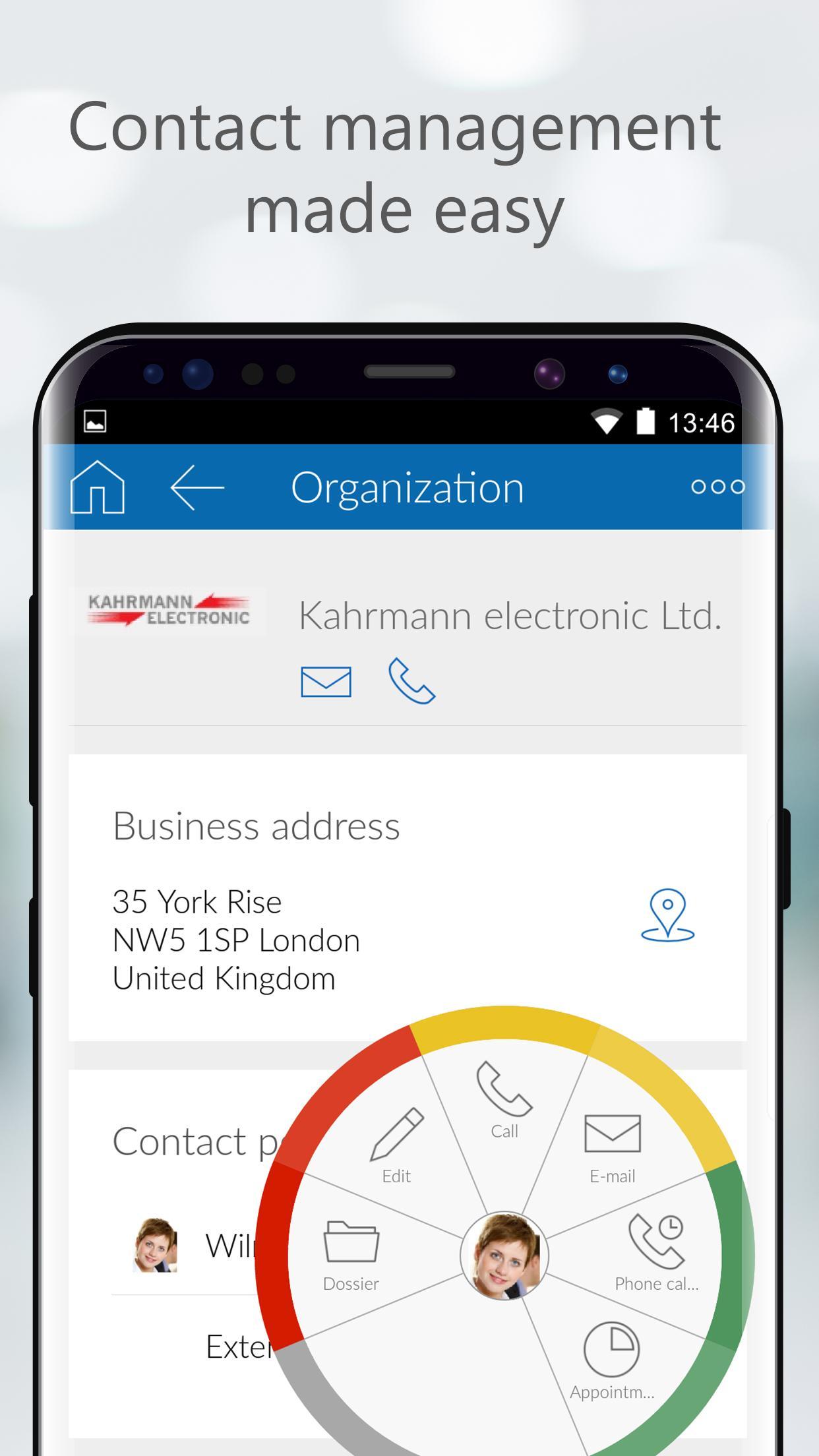 언제든지 연결 상태를 유지하십시오 - 앱 내에서 직접 고객 또는 비즈니스 파트너에게 전화, 쓰기 또는 문자를 보내십시오. 다른 연락처 목록은 연락처를 구성하는 데 도움이되므로 모든 주요 계정 고객 또는 동료를 표시 할 수 있습니다. 스마트 검색 기능으로 연락처를 쉽게 찾으십시오.