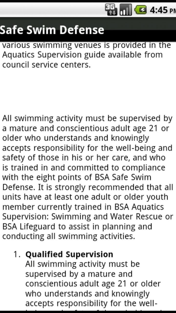 공식 스카우트 활동의 모든 참가자는 Guide to Safe Scouting 에 익숙해 져야하며 보이 스카우트 오브 아메리카 정책 및 지침을 대체하는 주 또는 지방 정부 규정을 알고 있어야합니다. Guide to Safe Scouting 포괄적이고 독립형 문서가 아닌 스카우트 정책 및 절차에 대한 개요를 제공합니다. 일부 항목의 경우 정책 설명이 완료되었습니다. 단위 리더는 그러한 활동을 수행하기 전에 인용 된 추가 참조 자료를 검토해야합니다.