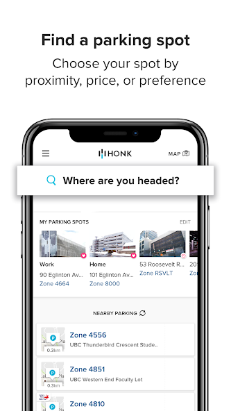 북아메리카의 1 위 신뢰할 수있는 주차 앱 : Honk와의 주차를 최대 50% 절약하십시오.