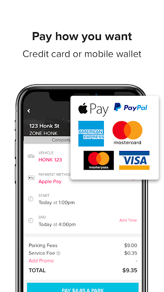 급여 스테이션에서 기다리고, 변화를 파고, 빈 주차 장소를 찾으려고 블록을 돌면서 다음에 주차하고 시간, 돈 및 주차 티켓을 저장할 때 HonkMobile 앱을 사용하십시오!
