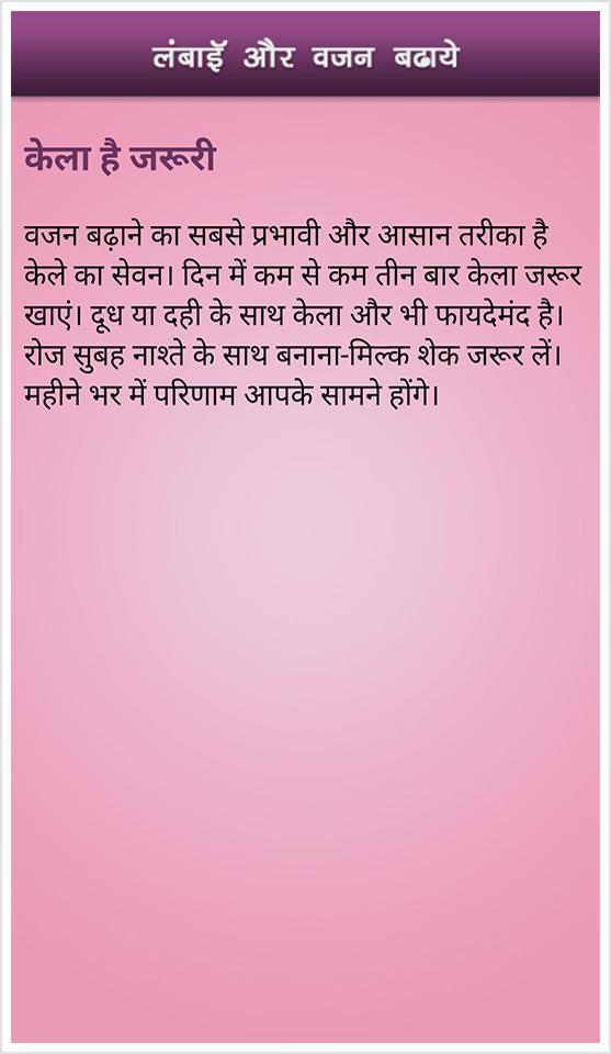 세계의 많은 사람들이 체중 증가에 대해 생각하고 있습니다. 이 앱에서 무게는 자연스럽게 인체에 영향을 미치지 않는 무게를 증가시킵니다. 체중을 높이기위한 모든 단계를 제공하십시오.