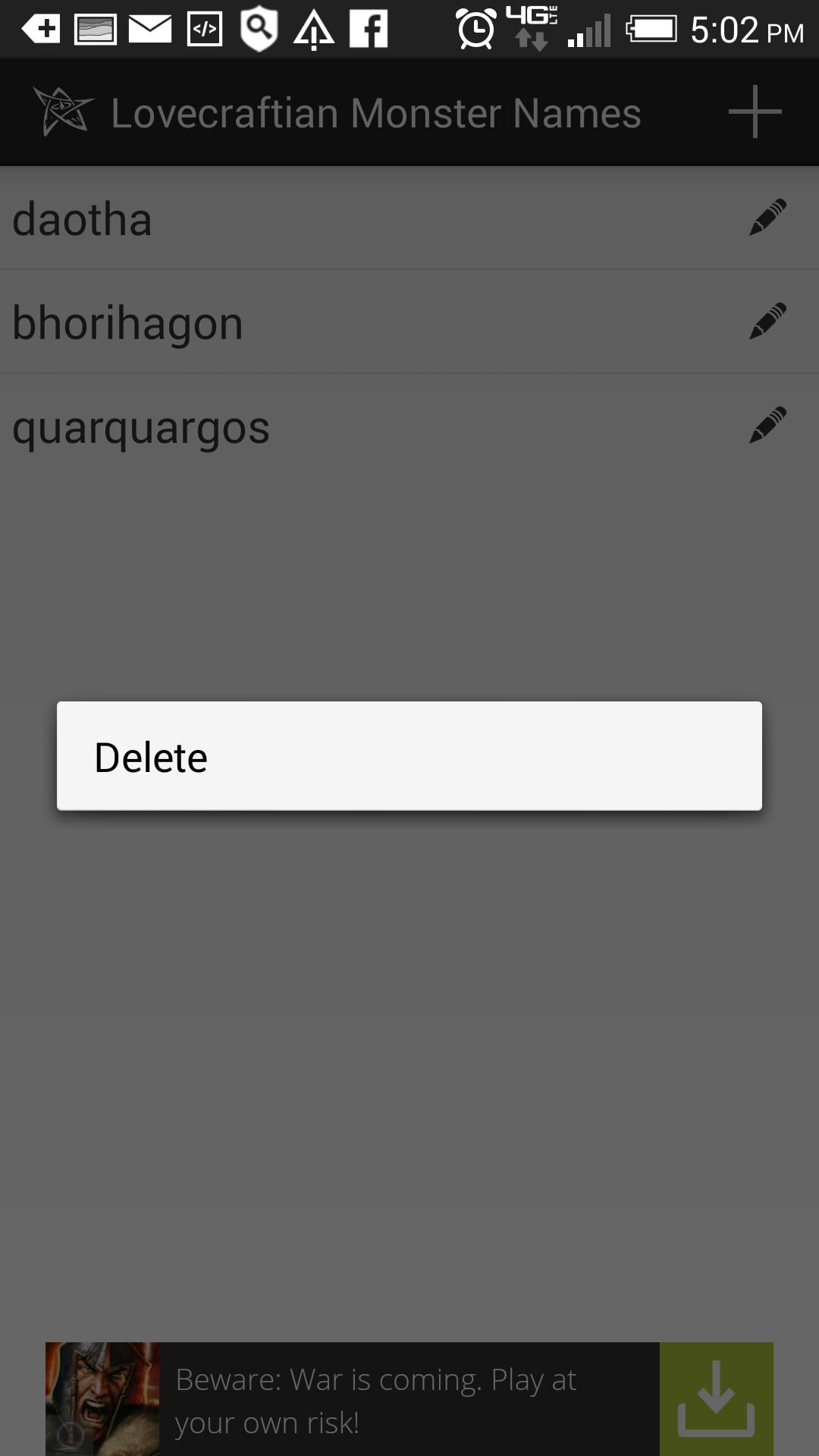 HP Lovecraft 및 Cthulhu Mythos의 엔티티와 유사한 이름을 만들고 편집
