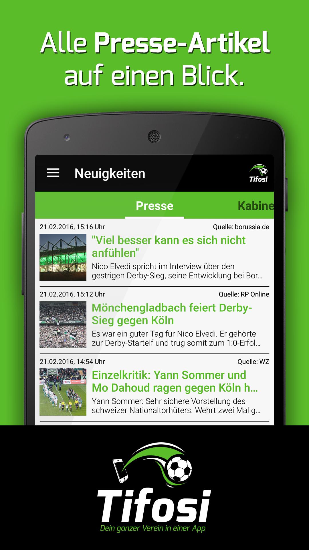 Android 용 " Tifosi MG "를 사용하면 항상 Borussia Mönchengladbach에 대한 모든 뉴스가 있습니다.