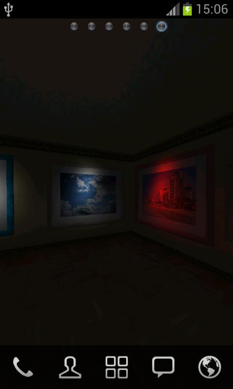 갤러리를 둘러보세요. 사진 및 휴대 전화에서 다른 이미지로 만든 갤러리를 방문하십시오. 세련된 내부에서 이미지가 어떻게 보이는지보십시오. 조명의 밝기와 색상을 변경하여 투어 중에 느끼는 느낌을 결정하십시오. 한 이미지를 보는 데 지치면 만지면 즉시 다른 이미지로 변경됩니다.