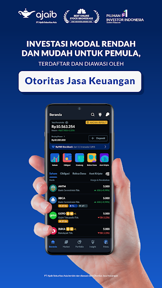 O aplicativo de investimento Ajaib é licenciado e supervisionado pelo OJK. Investir em ações, fundos mútuos e títulos no Ajaib é fácil, seguro e conveniente, adequado para iniciantes e profissionais.