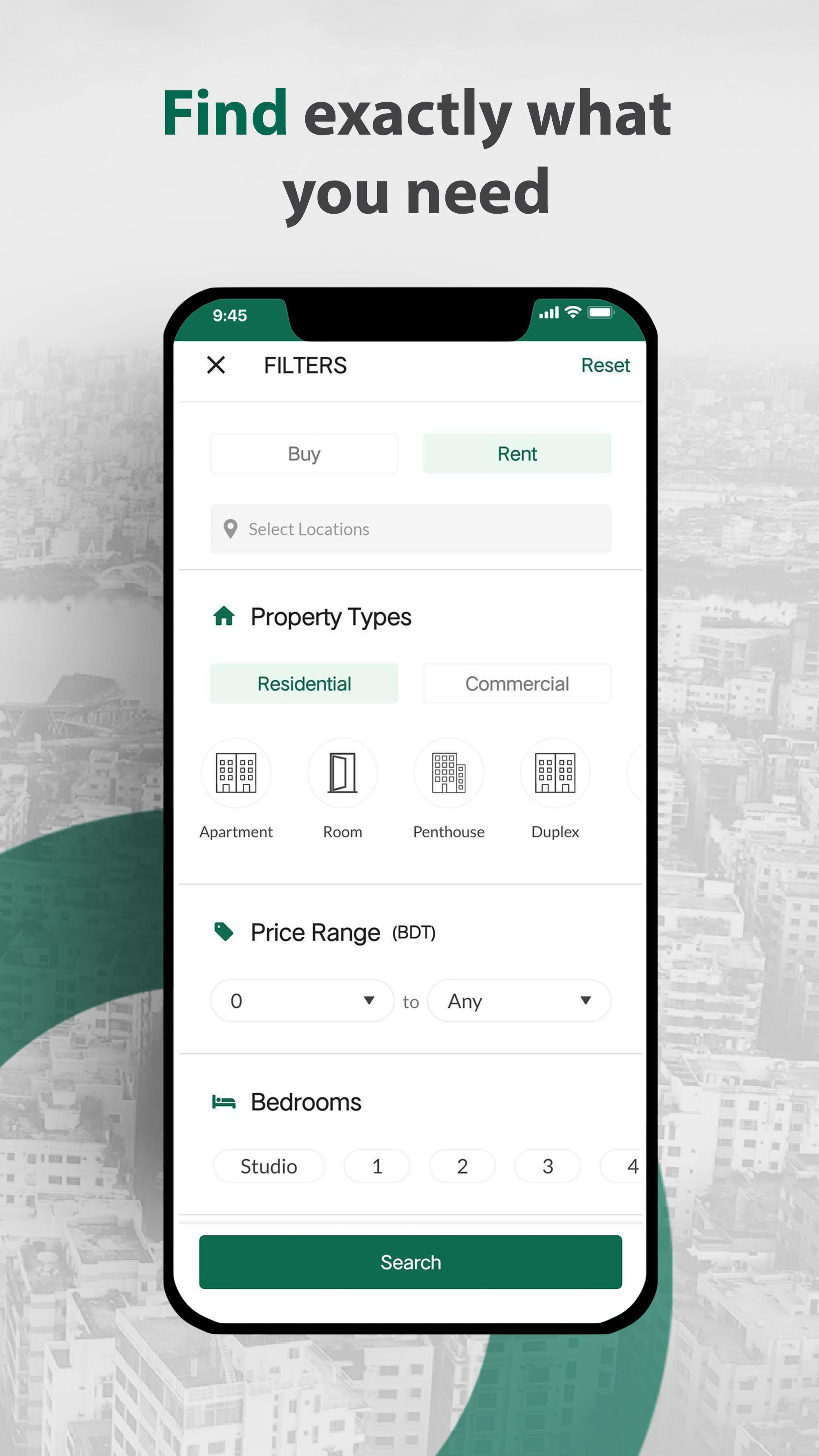 O aplicativo da Bproperty .com garante que você aterrisse na propriedade perfeita, oferecendo a opção de refinar sua pesquisa por local, tipo de propriedade, área e faixa de preço. E quando dizemos 'tipo de propriedade', queremos dizer que você pode inserir as especificações exatas ou a configuração da propriedade que está procurando e o aplicativo o levará bastante a ele.