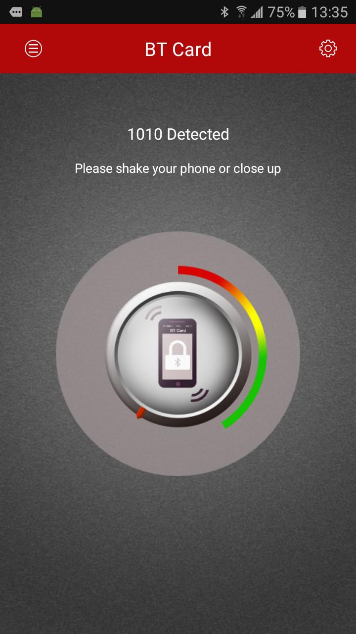 Quando você agita o telefone inteligente, ele aciona uma conexão com o leitor Bluetooth. A porta será desbloqueada quando o usuário já tiver sido autorizado.