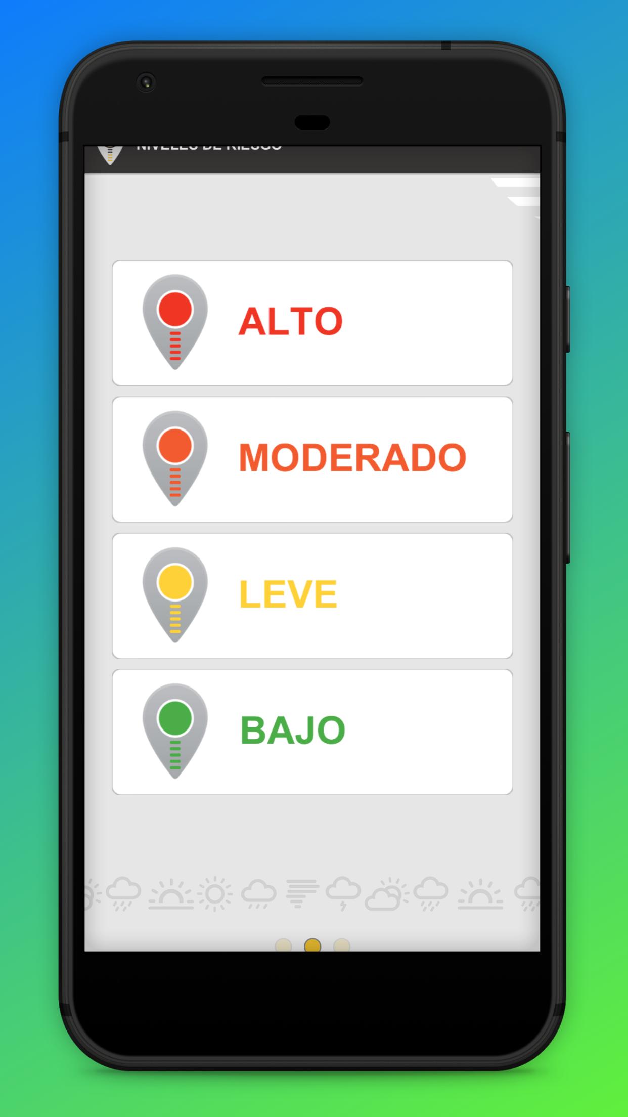 App de notificação dos níveis de risco climático e recomendações oficiais, consulta em tempo real dos valores das estações meteorológicas e formas de contato oficial antes de emergências do município de La Plata.