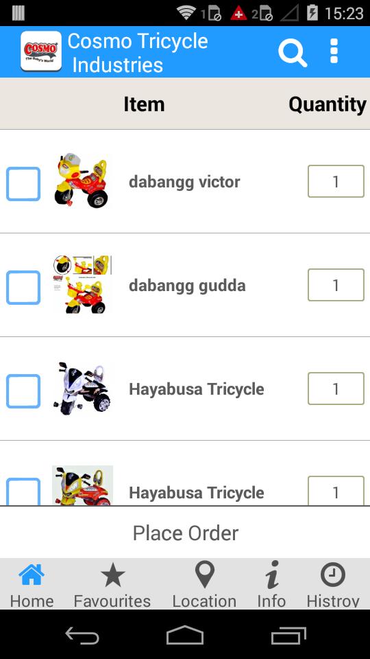 Este aplicativo mostra o catálogo de produtos da Cosmo Tricycle Industries .