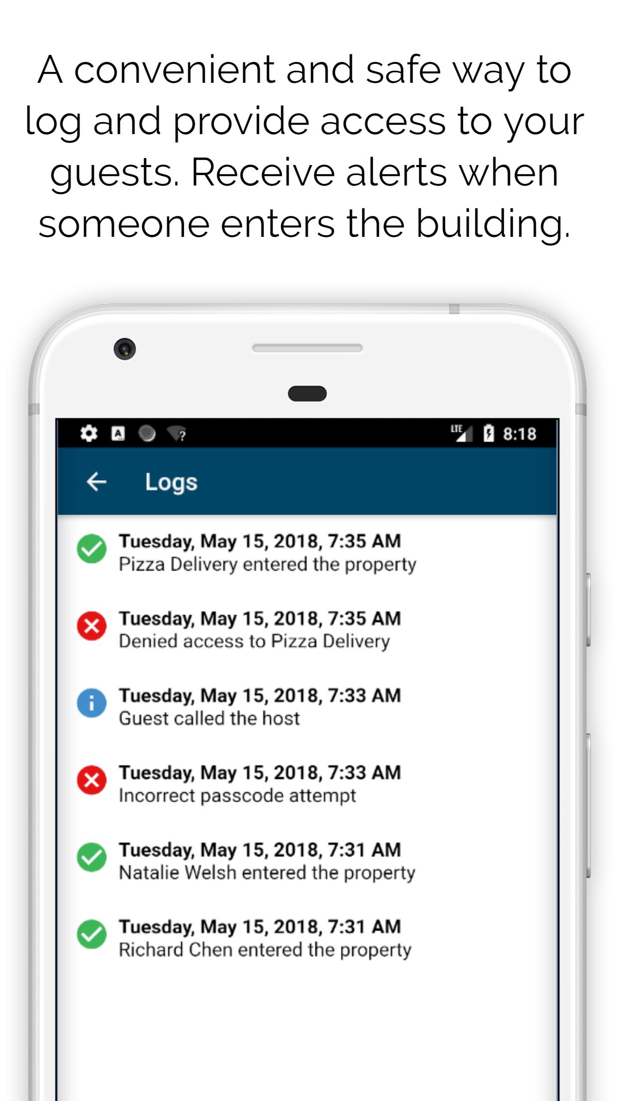 A Visionarus exibe seus visitantes, abra a porta para seus convidados, notifique -o sobre a chegada deles e mantenha os encrenadores afastados. O Digital Doorman trabalha 24 por 7 e manterá um tronco arrumado de todos os seus visitantes. O acesso ao edifício pode ser imediatamente concedido ou revogado a qualquer momento usando o aplicativo móvel.