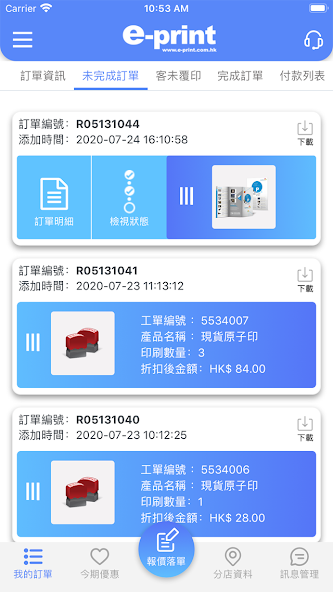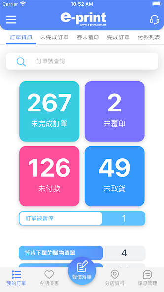 e-print traz uma nova experiência a todos os clientes e atende às suas necessidades para serviços de colocação de pedidos. Atualizamos as funções do aplicativo e-print existente para que você possa fazer pedidos, verificar pedidos, efetuar pagamentos, enviar deslizamentos de depósito e consultas on-line no seu telefone celular a qualquer momento, em qualquer lugar, independentemente das restrições geográficas. Você também pode verificar o status do pedido e verificar o manuscrito através do aplicativo e-print , para não precisar andar com um aplicativo.