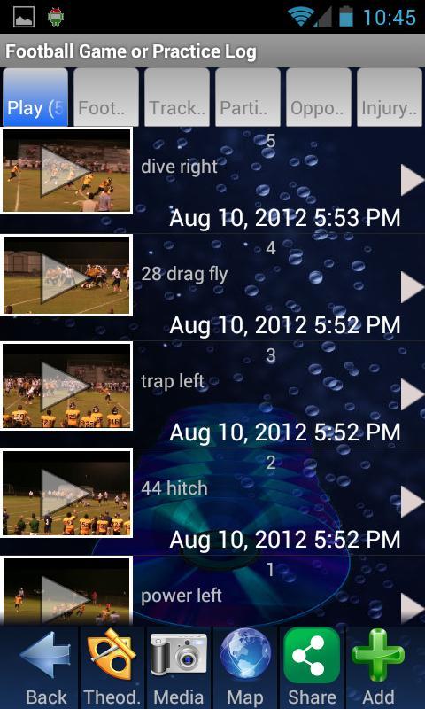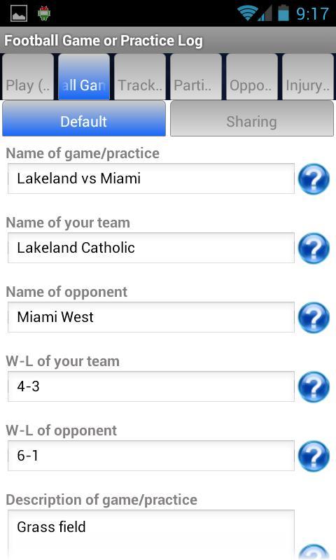 O Football Game or Practice Log é um aplicativo Android da Majorforms, que permite que um treinador, pai, equipe etc. documente cada jogo durante um jogo ou prática, incluindo vídeo, estatísticas e notas. De fato, visualizamos várias pessoas designadas para coletar informações específicas sobre cada reprodução, tornando a coleta de dados simples (por exemplo, uma pessoa coleta jardas obtidas enquanto outra registra os jogadores envolvidos). You can also allow family, friends, players, coaches, etc. to view the data and video during (live) or after the game or practice sharing it through the website you can create on MajorForms or through Facebook or Google+, Twitter, e-mail, etc. Once the plays are uploaded to your website you can edit the data, augment the statistics, create reports and/or maps, and download the data or reports to spreadsheets or other documents. Se você não estiver usando seu smartphone ou tablet para gravar o vídeo, cada reprodução pode ser adicionada automaticamente ao evento de reprodução de outra câmera após o jogo ou a prática em nosso site. Você não precisa ter acesso à Internet para executar o aplicativo, mas se o fizer, poderá fazer upload de seus dados e preservá -los. Além disso, o aplicativo vem com ferramentas como documentação climática que registra a temperatura, pressão, umidade, direção do vento etc. para cada jogo. Experimente, é grátis. Depois que o jogo ou a prática é concluído, você pode criar um vídeo automaticamente (nosso programa ordena todas as peças e as integra em um vídeo para download) para pais, treinadores ou jogadores. Confira aplicativos semelhantes em www.majorforms.com.
