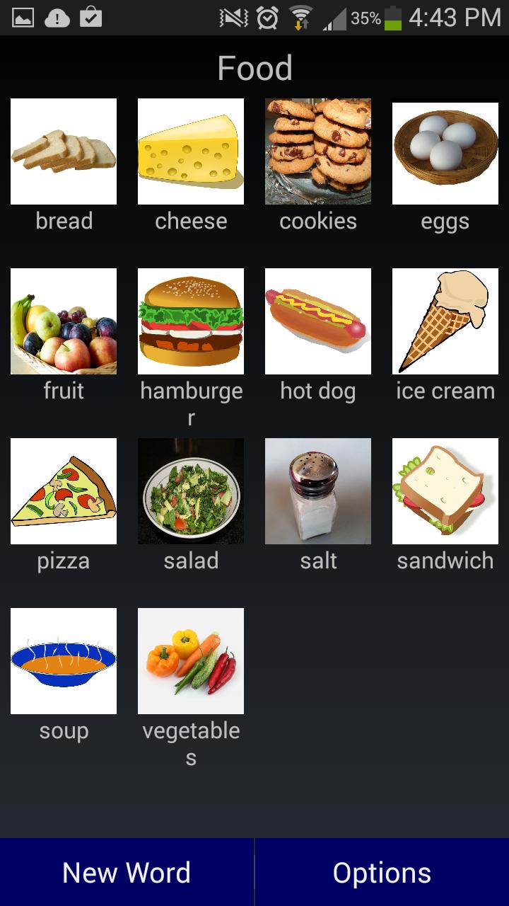 Ao contrário de outros aplicativos que vêm com um dicionário pré-compilado, Personal Picture Index é mais leve e destinado a ser adaptado ao seu estilo de vida. Ele não inclui definições e, embora um pequeno conjunto de palavras padrão esteja incluído no aplicativo, ele também é capaz de adicionar palavras usando imagens da sua câmera ou da sua galeria. Use isso para ajudar a construir (com a ajuda de terapeutas ou entes queridos) um conjunto de palavras recorrentes e relevantes para o seu estilo de vida, incluindo pessoas e lugares significativos em sua vida.
