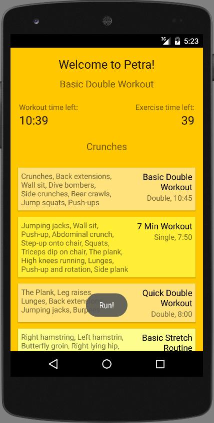 Simplesmente iniciando um treino, aumente o volume e a Petra dirá qual exercício para fazer e por quanto tempo através dos alto -falantes.