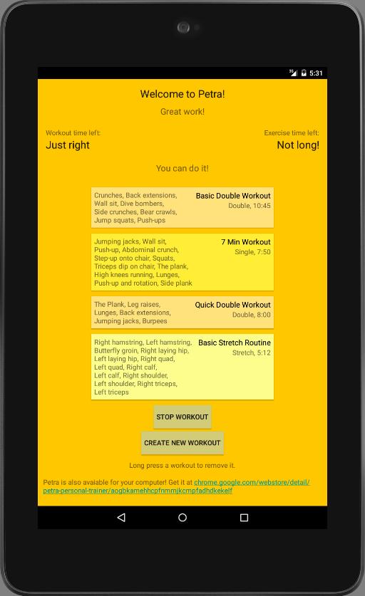 Petra também está disponível para o seu computador aqui: https://chrome.google.com/webstore/detail/petra-personal-trainer/aogbkamehhcpfnmmjkcmpfadhdkekelf
